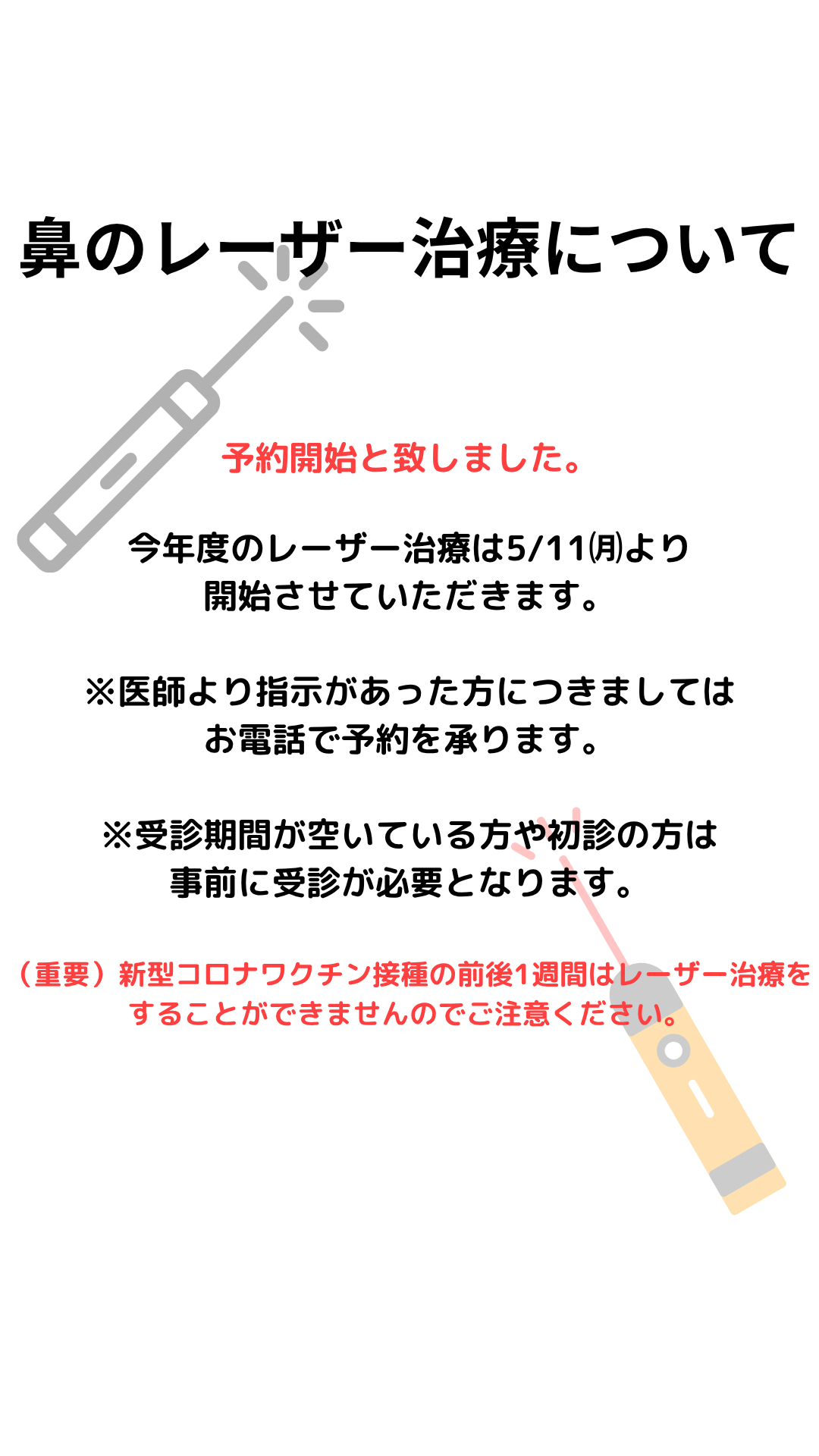 《New‼》 2026.4.1 お知らせ:レーザー治療予約開始のお知らせ